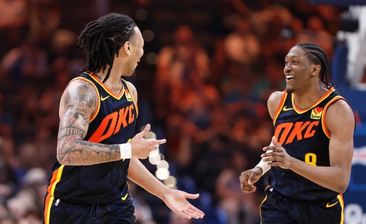NBA Playoffs 2024 Josh Giddey left bloodied as Oklahoma City Thunder crush Dallas Mavericks Boston Celtics beat Cleveland Cavaliers in game one news scores results Jaylen Brown Derrick White Very well made.