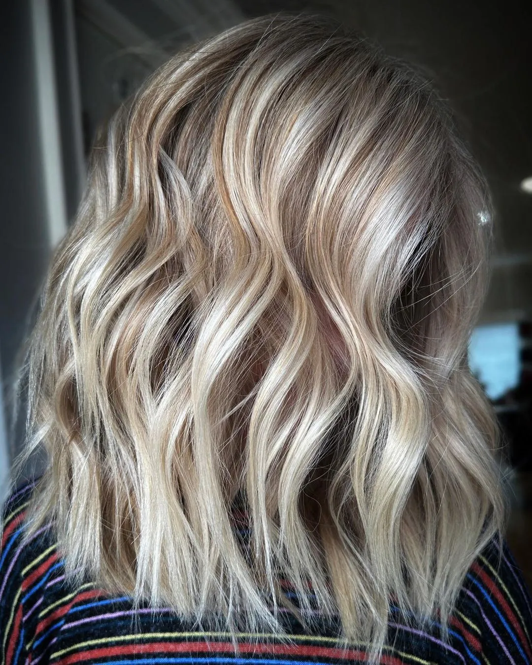 Bright textured blonde Bob formula and breakdown She wanted to see brighter pops of blonde so instead of weaving my highlights I sliced for more coverage leaving enough of her Very well made.