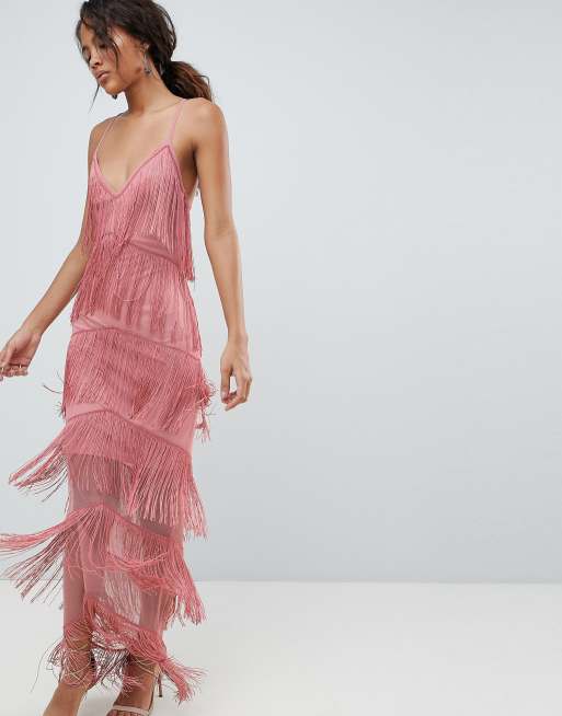 Vestido largo y ajustado de tirantes con malla y flecos de ASOS DESIGN Tall Very well made.