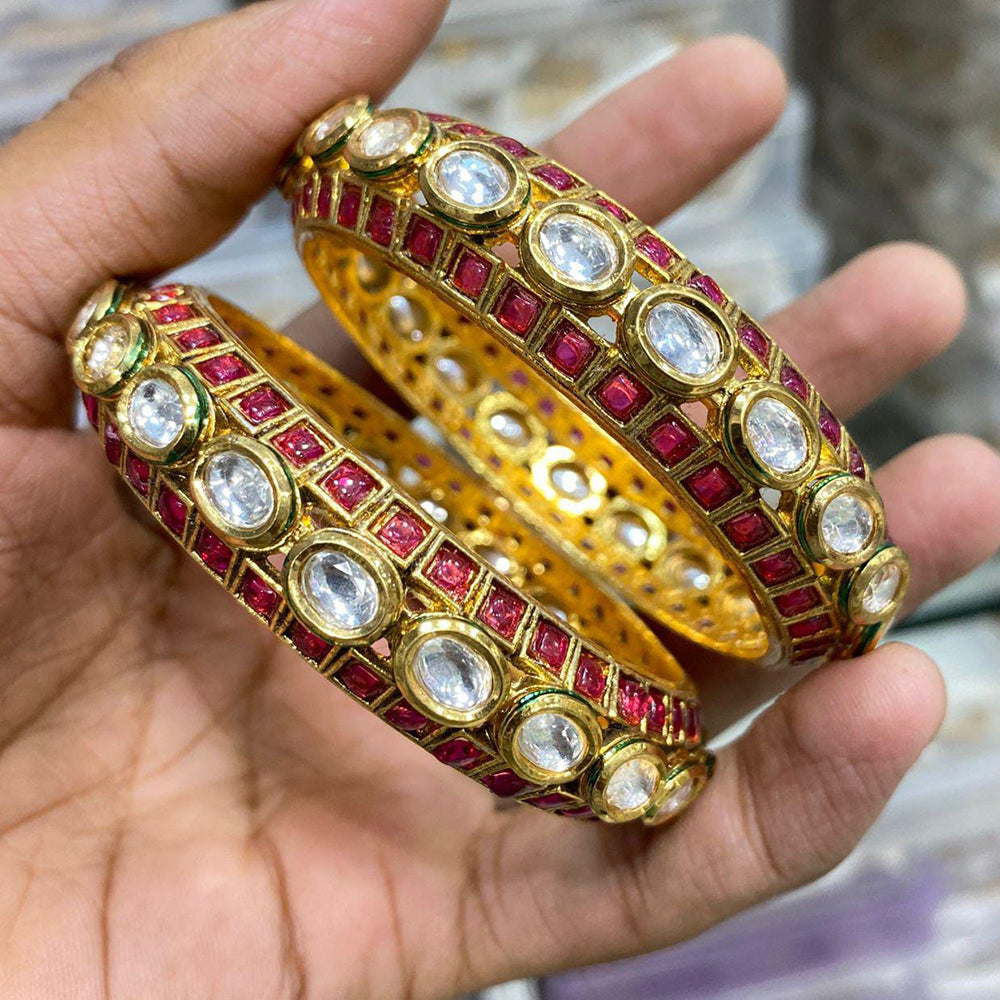 Rubans Set of 2 22K Gold Plated Ruby Stone Studded Traditional Bangles Very well made.