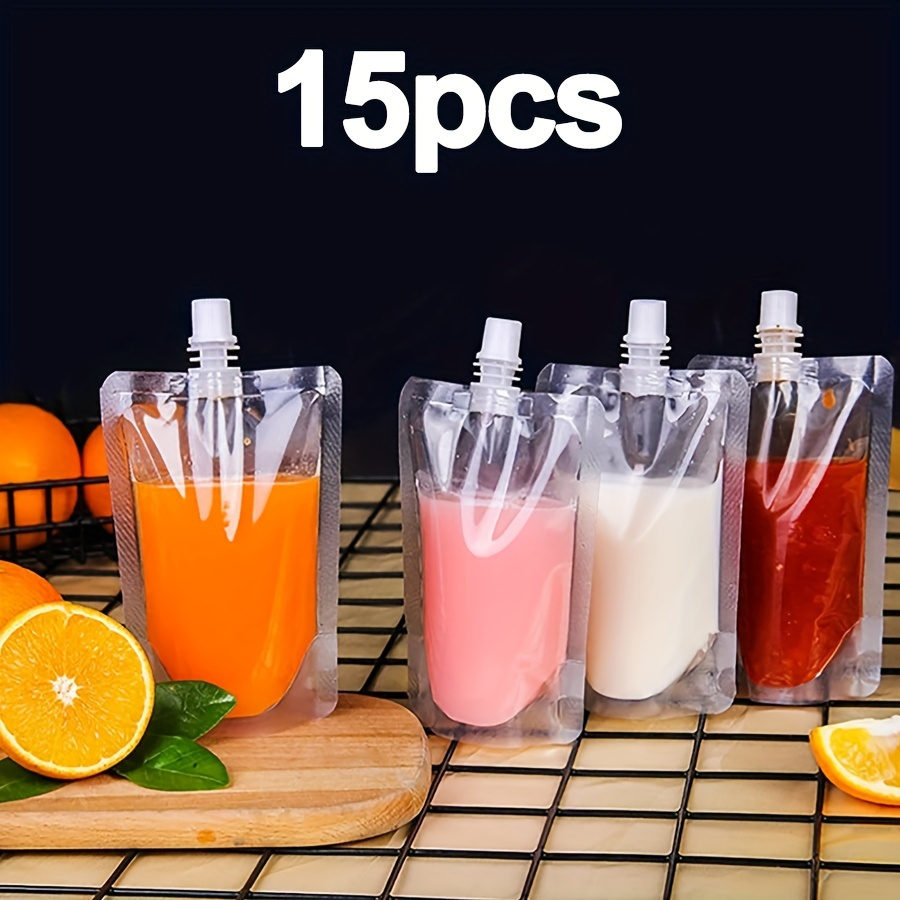 15pcs Disposable Beverage Bags Transparent Soy Milk Liquid Storage Bag Yogurt Milk Plastic Packaging Bag Leakproof Beverage With Cover For Travel Outdoor Activities Sports Concert Very well made.