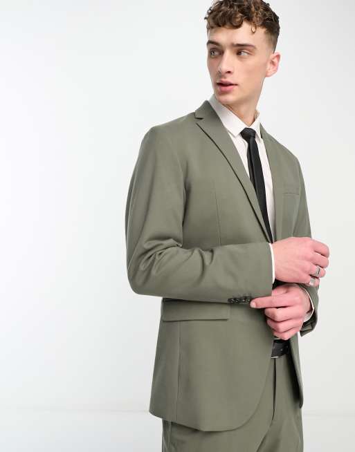 Chaqueta de traje verde caqui de corte slim con botonadura simple de New Look Very well made.