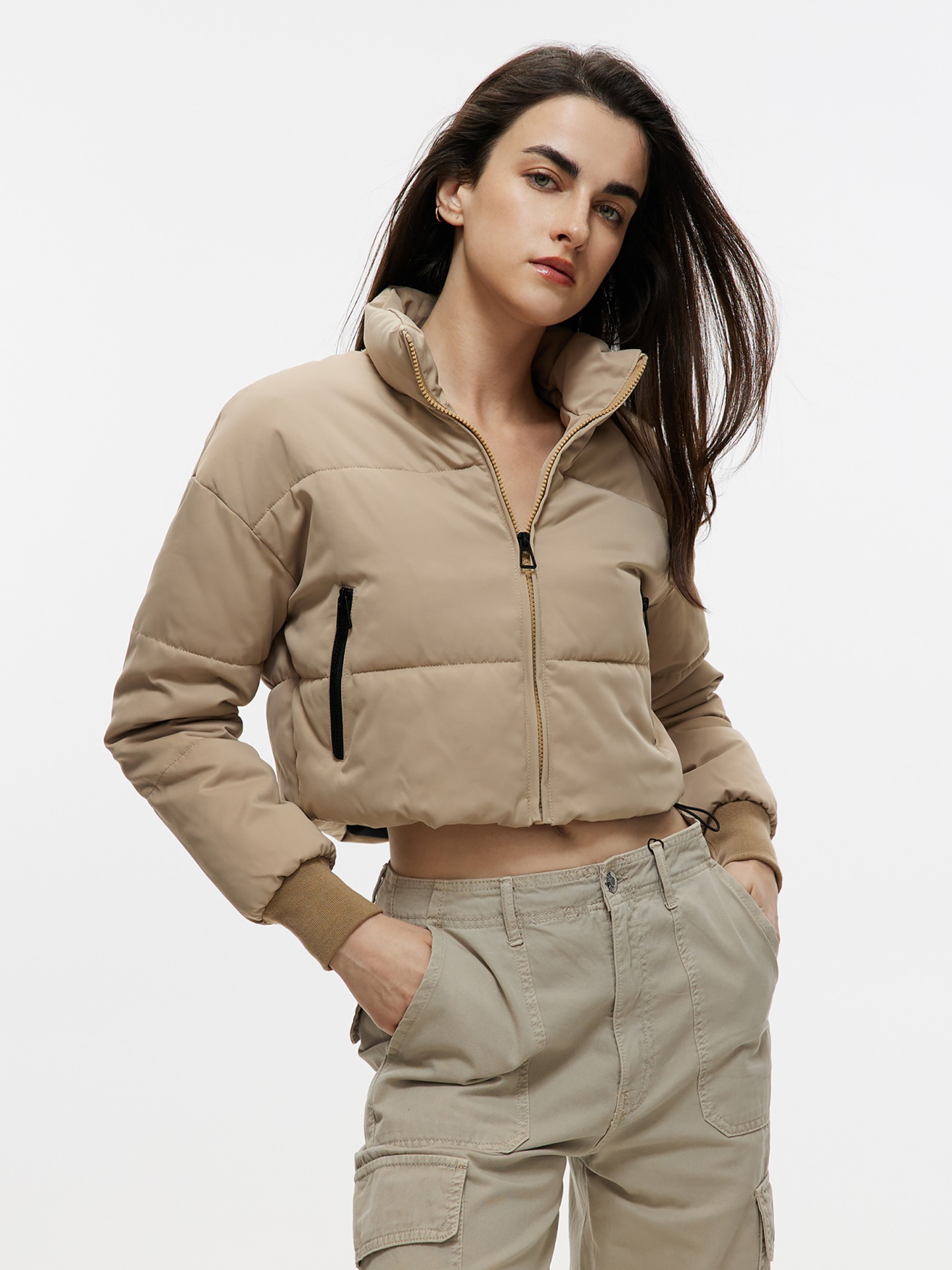 Gihuo chamarra corta acolchada de manga larga para mujer Caqui Very well made.