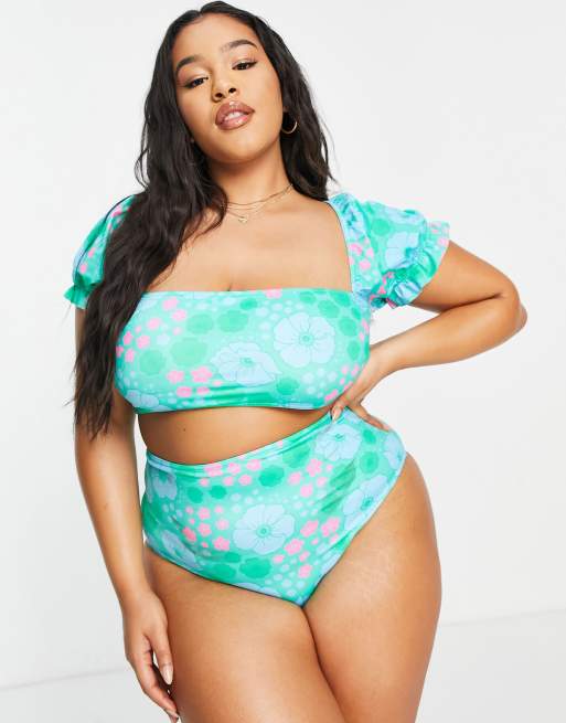 Top de bikini con estampado floral retro y mangas abullonadas de ASOS DESIGN Curve Very well made.