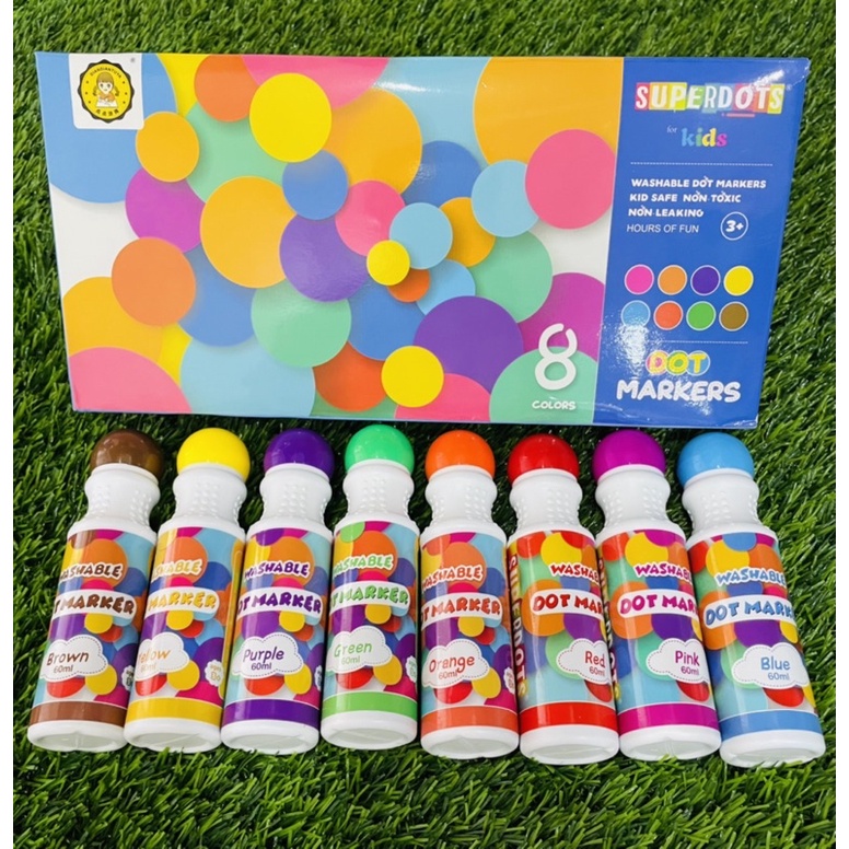 READY STOCK SUPERDOTS 18mm Big Head Dot Dot Marker 8 Colours DoADot Non Toxic Washable Kids Early Learning Shopee Malaysia Very well made.