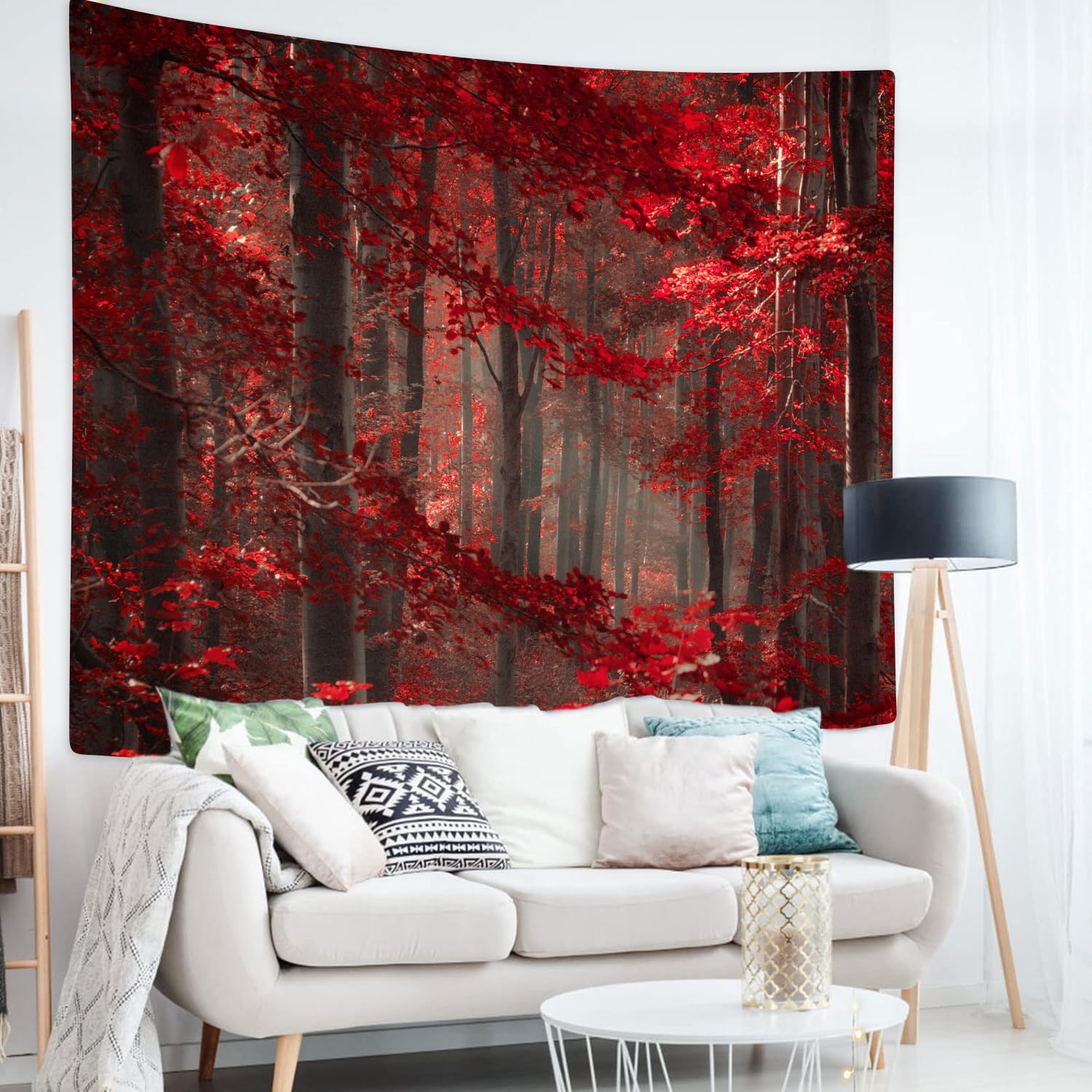 JAWO Natural Landscape Decor Tapestry Wall Hanging Autumn Fall Maple Forest with Red Leaves Polyester Fabric Wall Tapestry for Home Living Room Bedroom Dorm Decor 80W X 60L Inches00 Home Kitchen Amazo... Very well made.