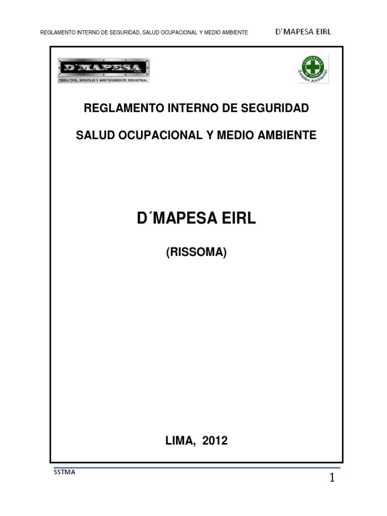 Reglamento interno de seguridad salud ocupacional y medio Very well made.