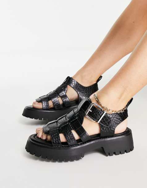 ASOS DESIGN Fresham Sandales plates semelle chunky en cuir de qualit sup rieure Noir Very well made.