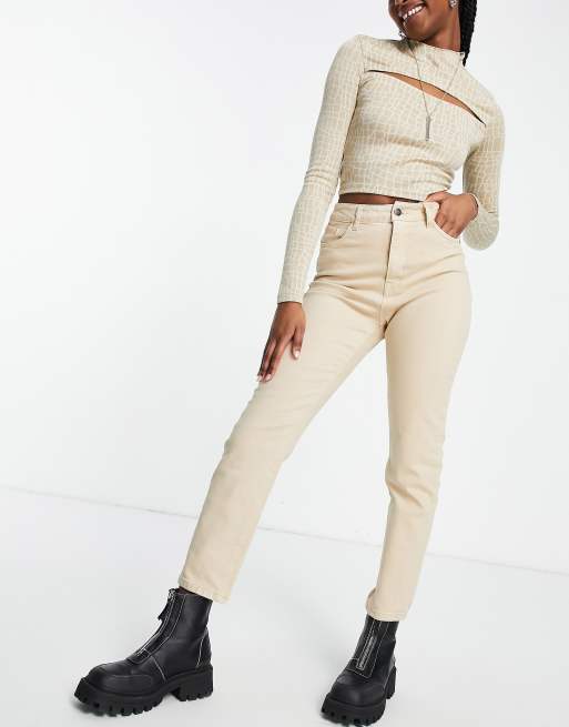MANGO Women Mom Fit Jeans Beige Ivory High Waisted Size 2 NEW Very well made.
