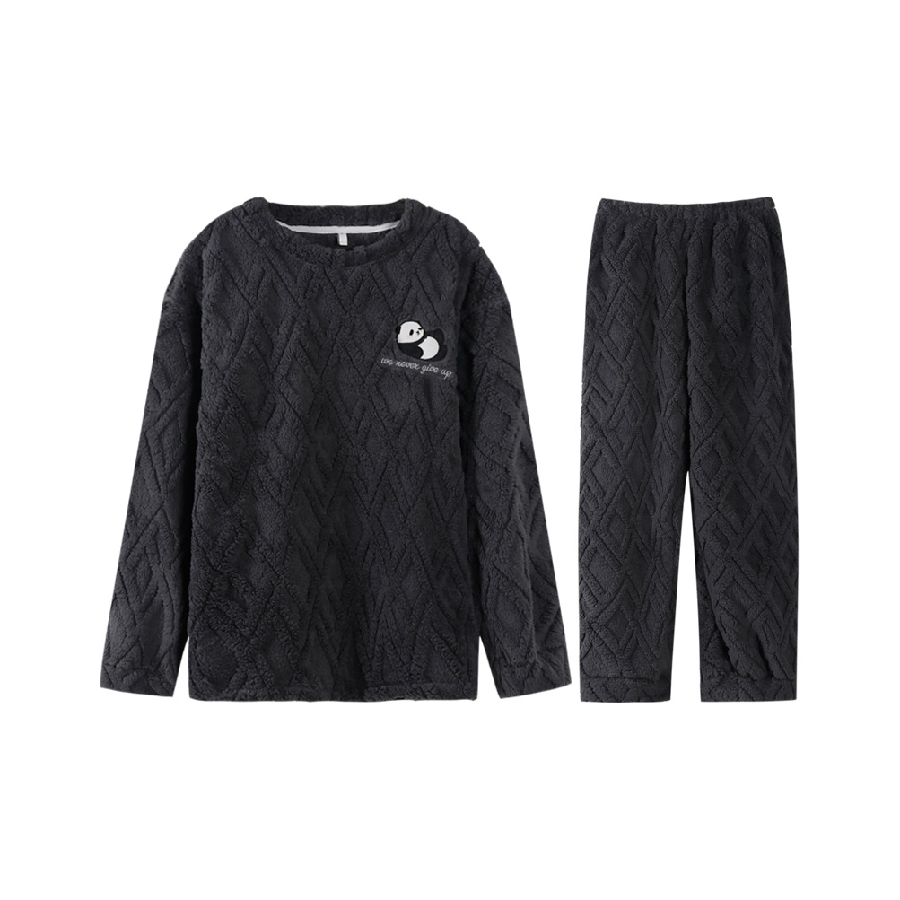 PMUYBHF Mens Flannel Pajamas Sets Warm Mens Pajamas Set Cotton Flannel Male Home Thermal Underwear Set German Velvet Long Sleeve Round Neck Fit Pants Very well made.