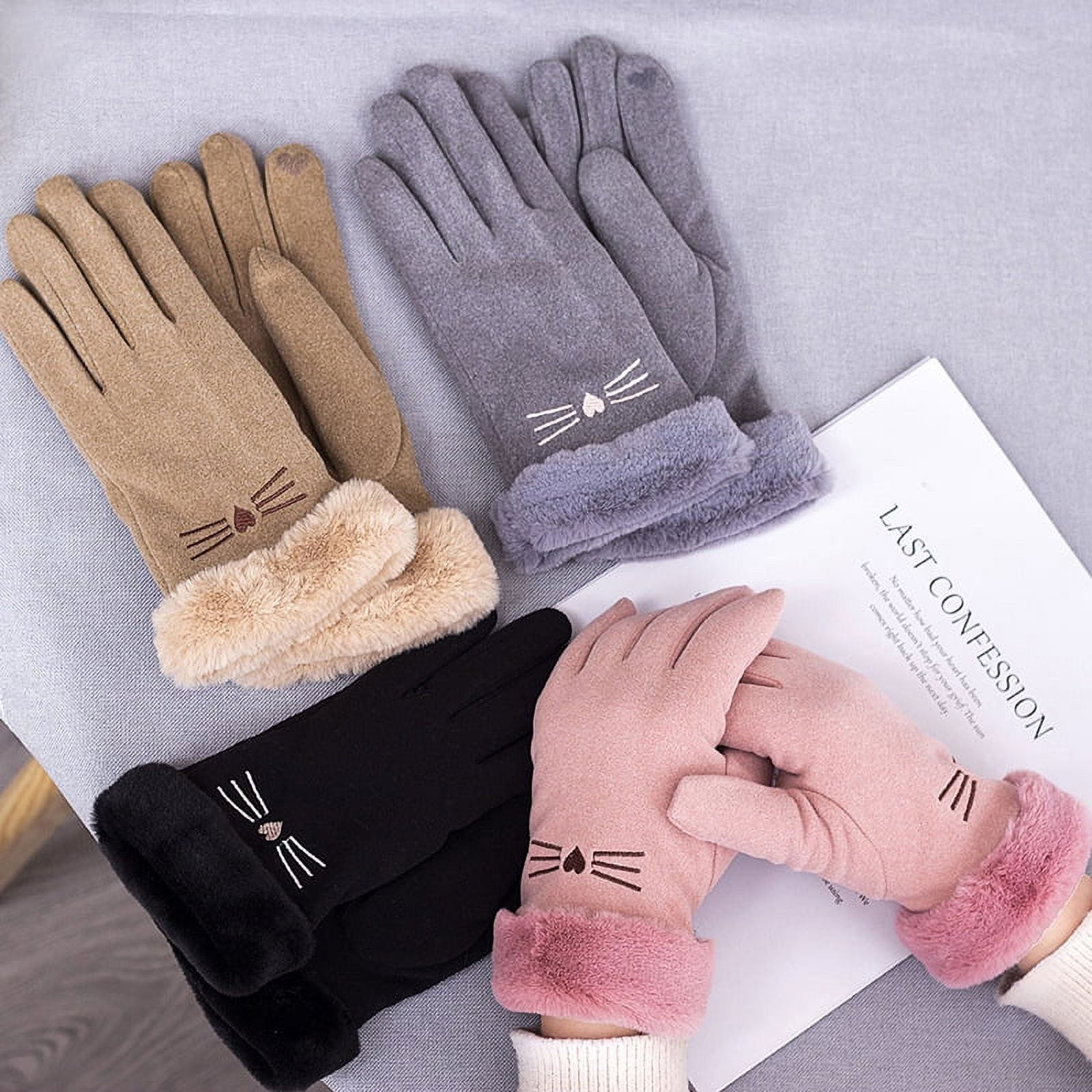 Women Soft Suede Cold Weather Gloves Cute Cat Fleece Lined Winter Thermal Mittens with Faux Fur Cuff Walmart Very well made.