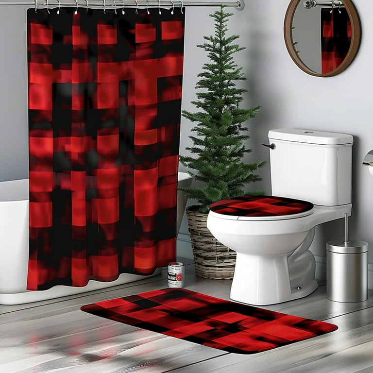 Red and Black Plaid Christmas Bathroom Set Shower Curtain in Festive Holiday Style Walmart Very well made.