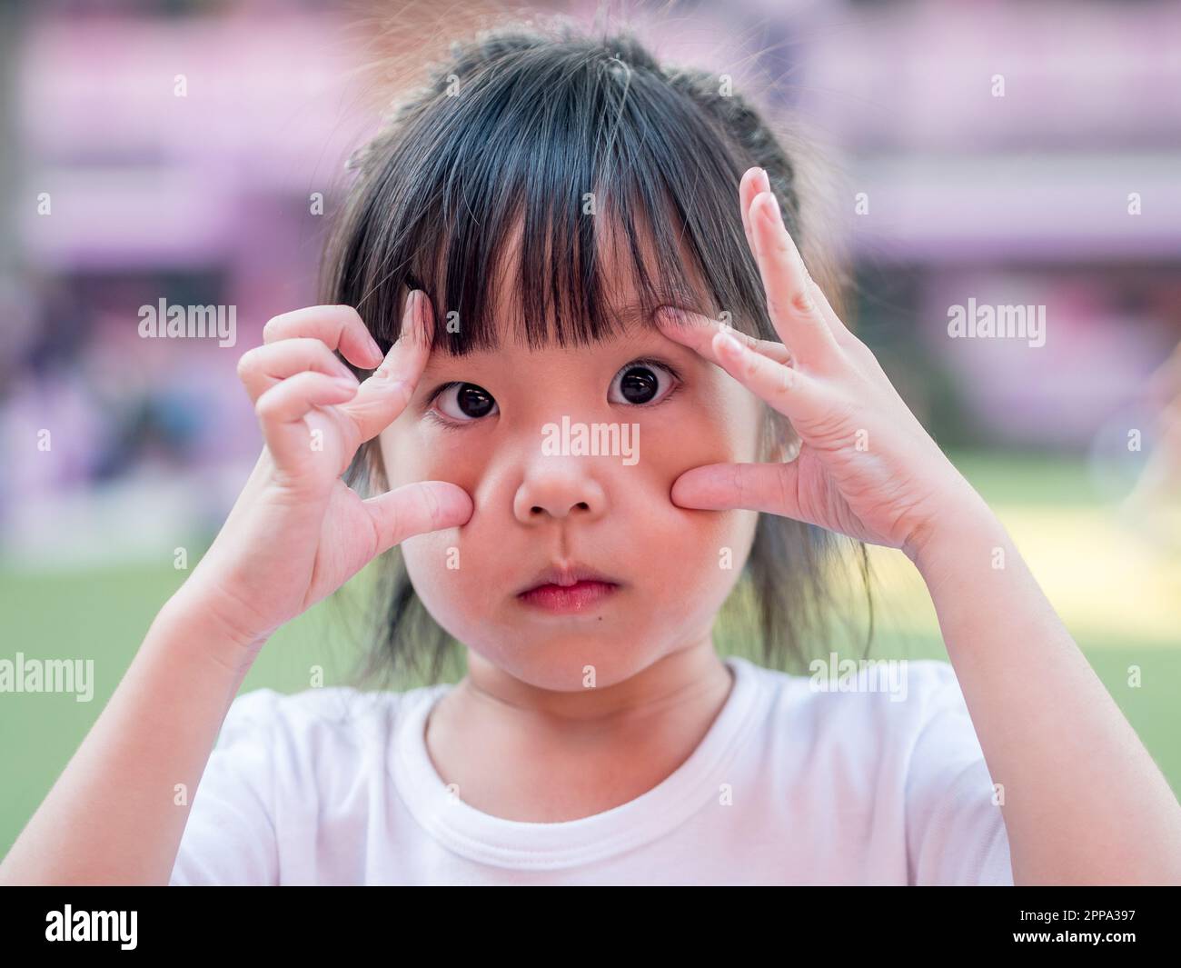 Little asian girl try to show big eyes action Stock Photo Alamy Very well made.