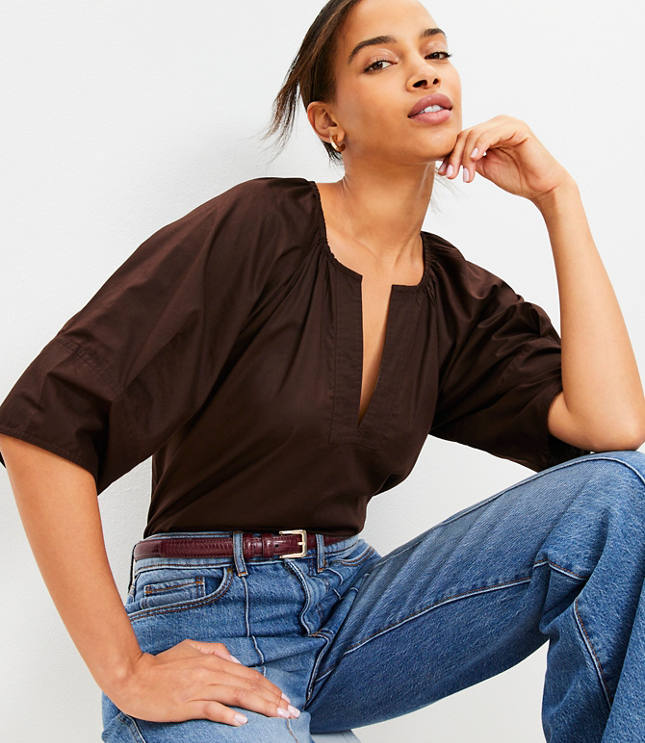 Deep V Neck Satin Button Front Bishop Sleeve Blouse Very well made.
