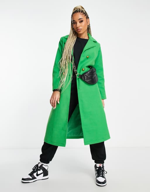 Abrigo largo verde luminoso con doble botonadura de QED London Very well made.