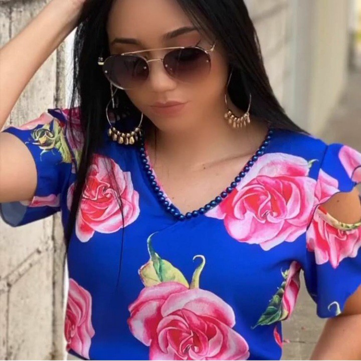 BLUSA ESTAMPADA MANGA CURTA ANDRESSA AZUL MARINHO Loja Strass Very well made.