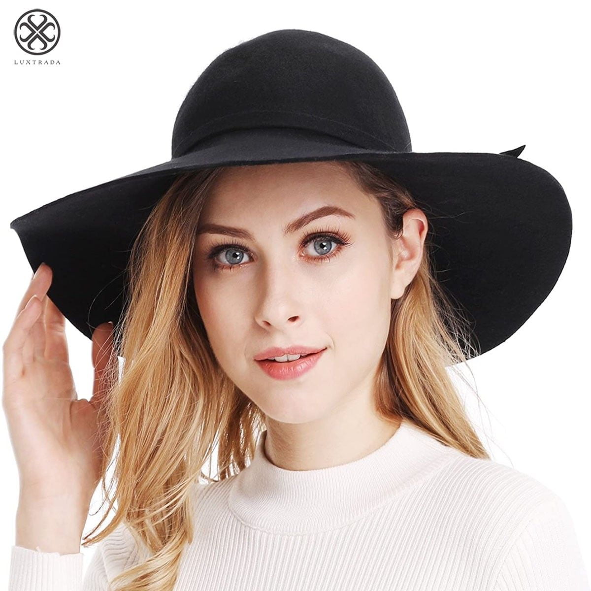 Women s Wide Brim Wool Ribbon Band Floppy Hat Vintage Wool Winter Hat Felt Fedora Floopy Beach Sun Cap Black Walmart Very well made.