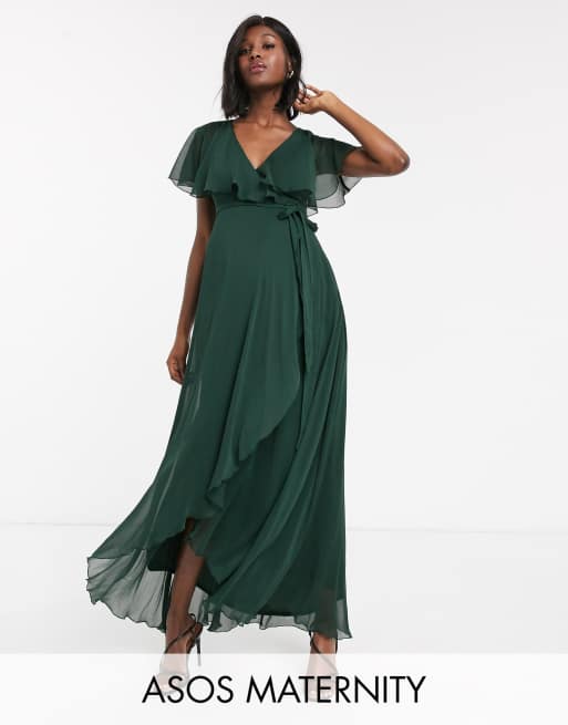 Vestido largo premam con bajo asim trico y capa en la parte posterior de ASOS DESIGN Very well made.