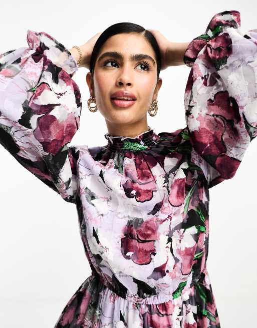 Vestido largo con estampado de flores mangas abullonadas y cuello Very well made.