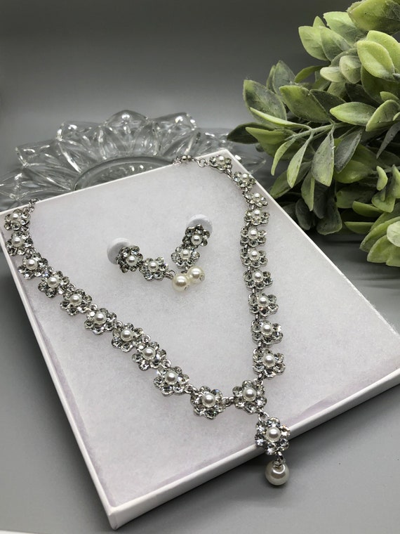 Clear Crystal Rhinestone Jewelry Set Earring Necklace Shell Pearl Plated for Bridal With Rhinestone Prom Wedding Shower Formal Accessories Etsy Very well made.