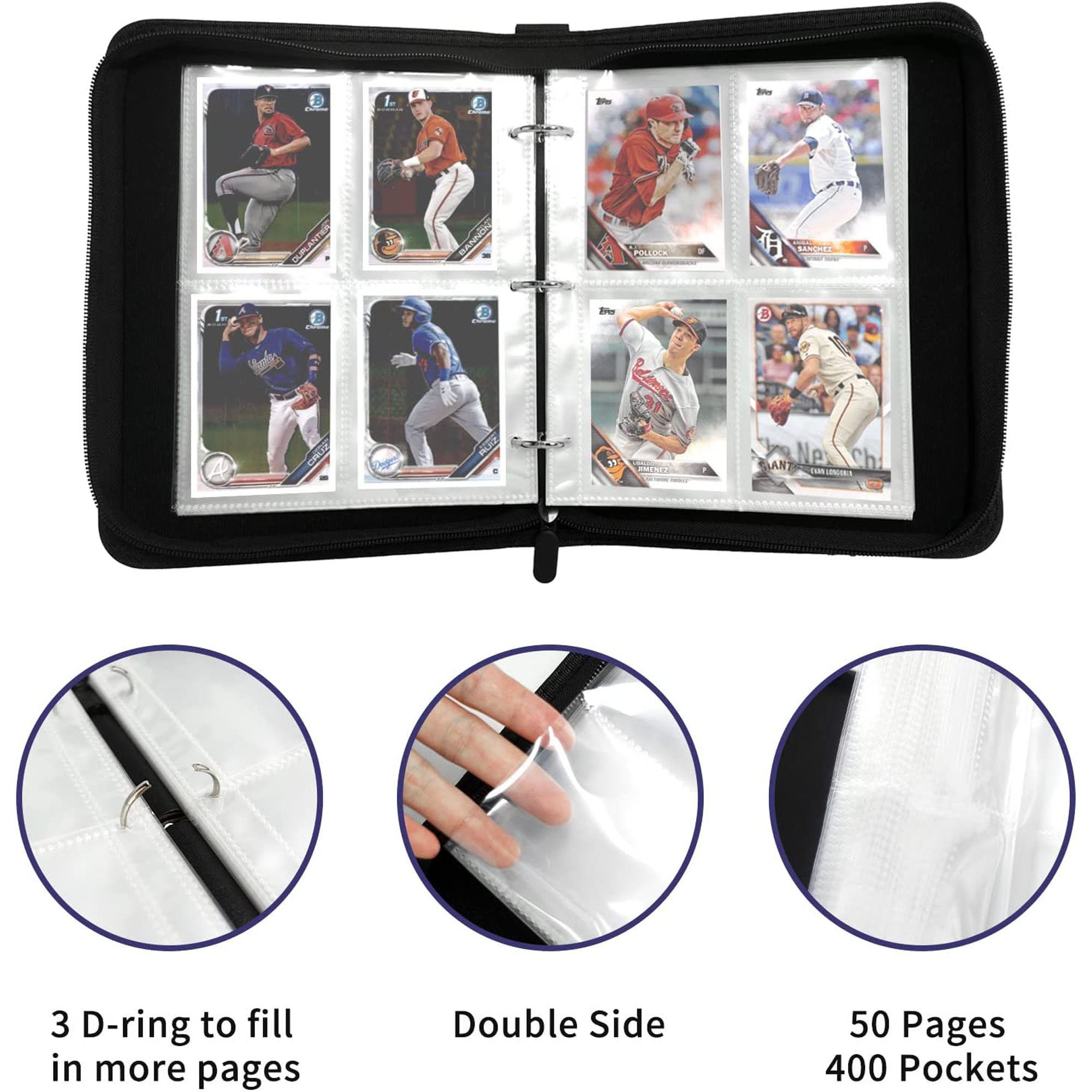 Card Binder with Zipper 9 Pockets Trading Cards Album Folder 360 Side Loading Pockets Black Very well made.