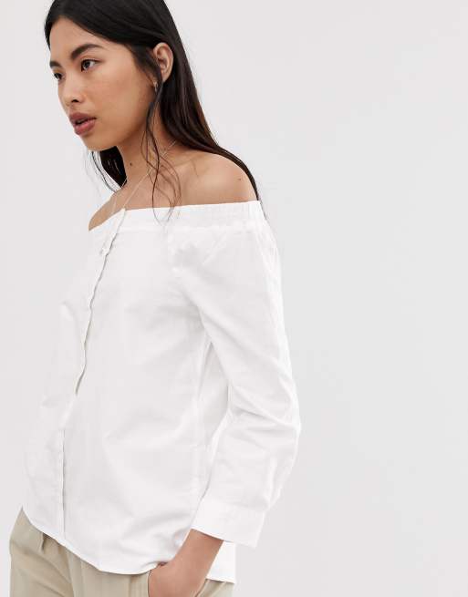 Camisa de manga larga con escote Bardot y detalle anudado en la parte delantera en blanco de ASOS DESIGN Very well made.