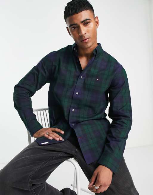 Camisa Oxford verde de manga larga a cuadros escoceses de Tommy Very well made.