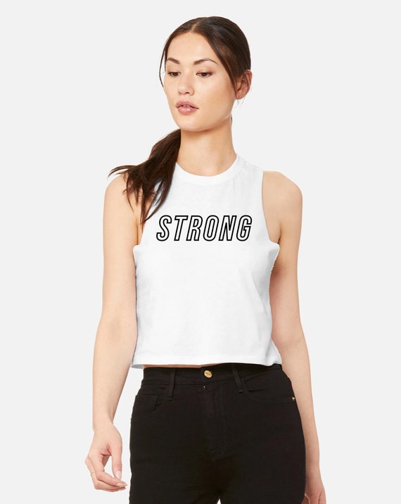Women s Workout Tank Gym Tank Top Workout Crop Top Workout Motivation Boxing Tank Running Tank STRONG Outline Crop Top Etsy Very well made.