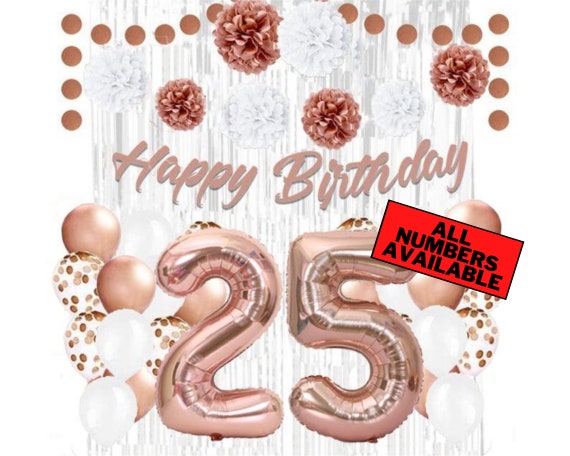 Rose Gold 25th Birthday Decorations for Women 40 Number Balloons Banner Silver Foil Curtains Balloons Pom Poms 25th Party Supplies Etsy Very well made.