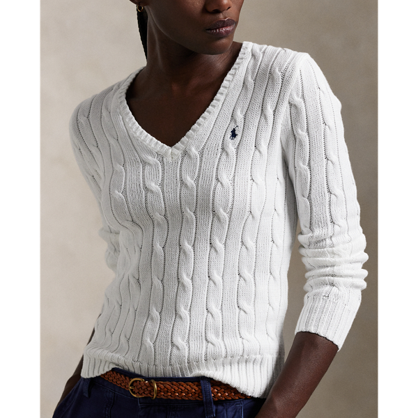 Pull col en V torsade en coton pour femme Ralph Lauren FR Very well made.