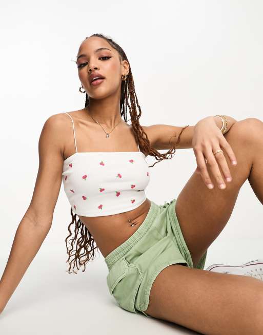 Top corto blanco asim trico de tirantes finos con cordones de ASOS DESIGN Very well made.