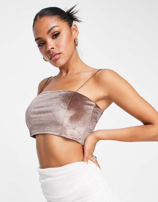 Top de tirantes corto rosado de terciopelo de Vesper ASOS Very well made.