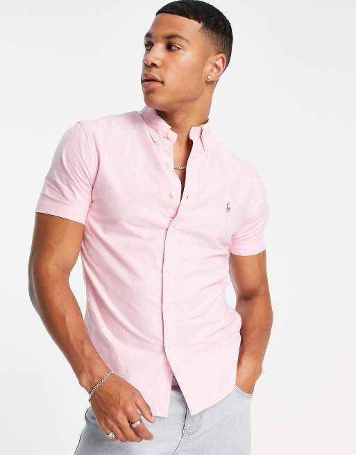 Camisa Oxford rosa de corte slim y manga corta con logo de Polo Ralph Lauren Very well made.