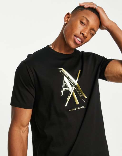 Camiseta negra con logo dorado en el centro de Armani Exchange ASOS Very well made.