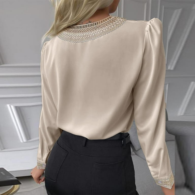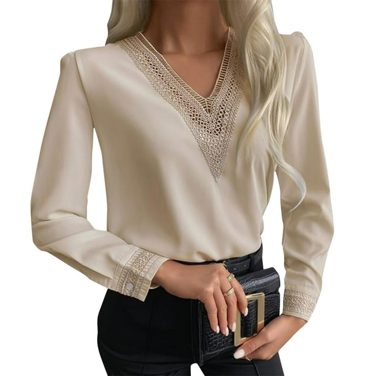 HSMQHJWE Camisetas Blancas Para Mujer Womens Long Sleeve Tee Shirts Cotton Ladies Autumn Winter Lace Patchwork V Neck Sweatshirt Long Sleeved Casual Very well made.