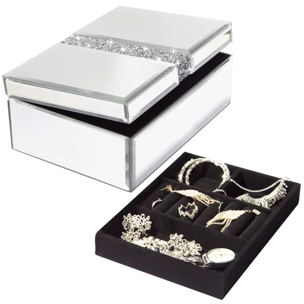 Diamante Mirrored Glass Jewelry Box JB007 High Quality Jewellery Organiser Box Glass Jewelry Case Very well made.