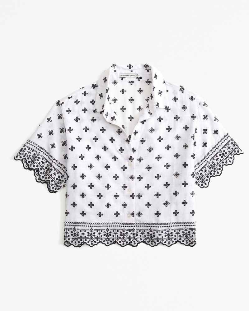 Mujer Camisa bordada de manga corta de mezcla de lino Mujer Very well made.