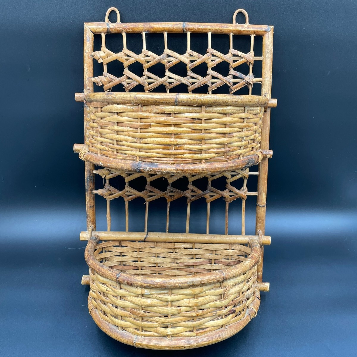 Vintage 2 Tier Shelf Hanging Half Round Boho Basket Rattan Wicker Woven Wall Very well made.