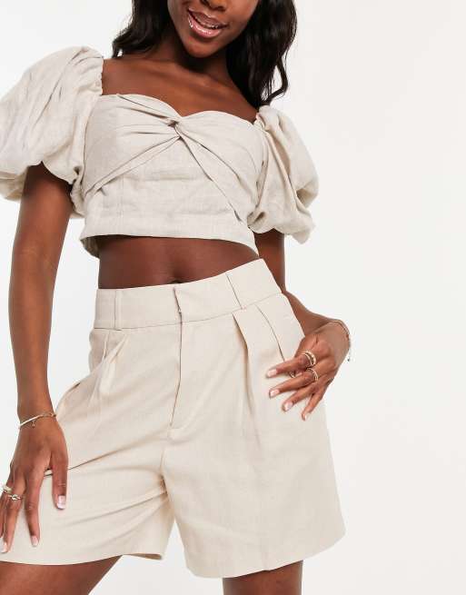 Stradivarius linen look bermuda short in natural Very well made.