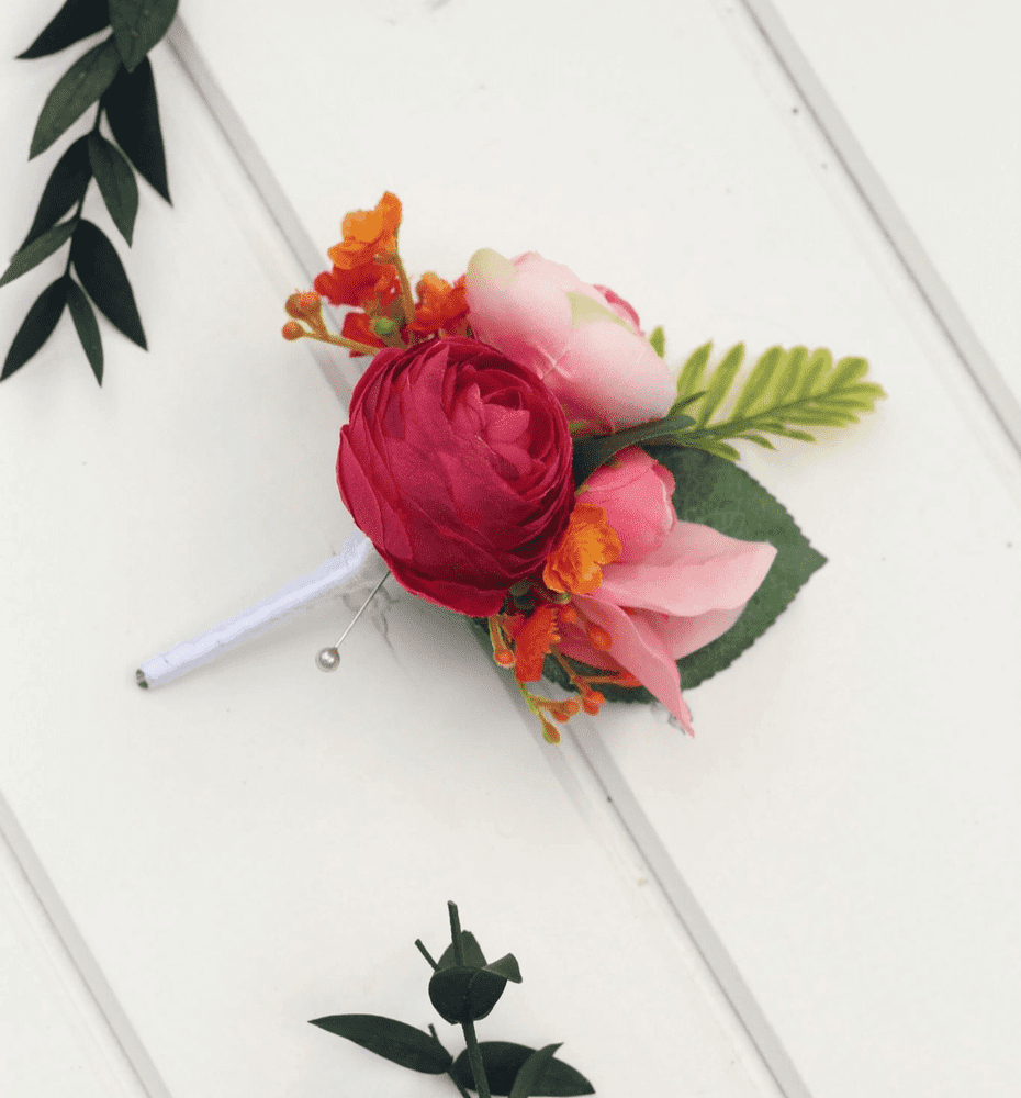 Hot Pink Artificial Buttonhole Grooms Pink Flower Wedding Boutonniere Orange Wedding Buttonhole Very well made.