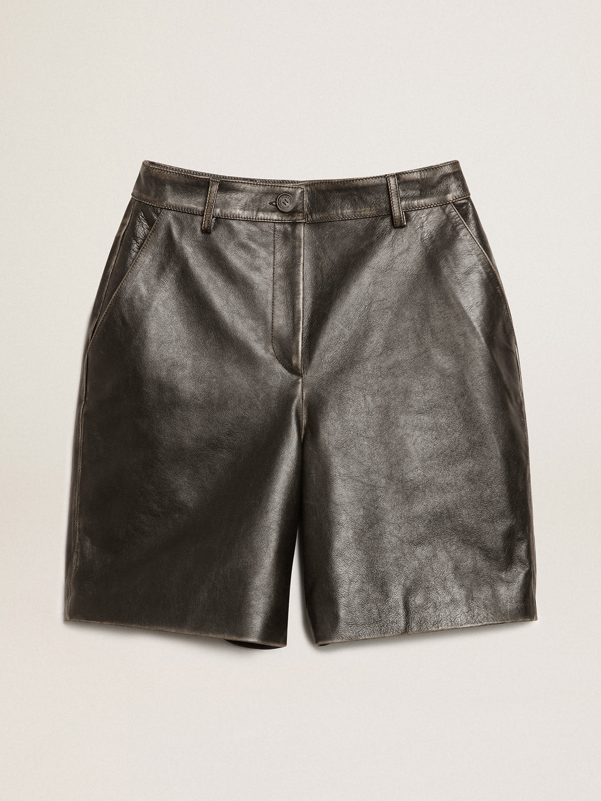 Bermudas de piel color negro con efecto desgastado Very well made.