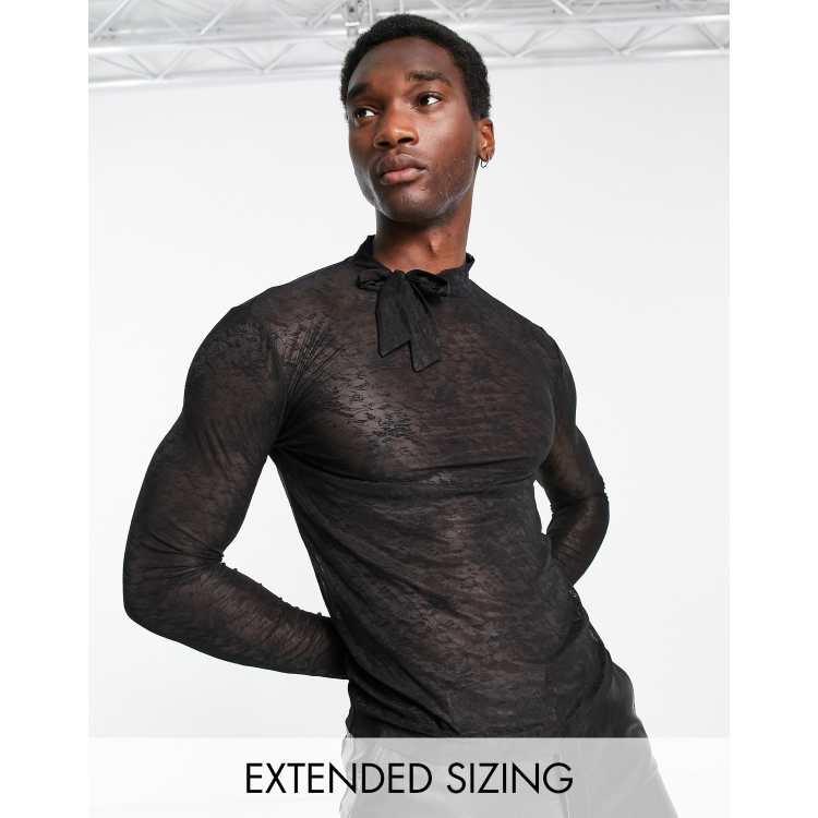 Camiseta negra entallada de manga larga con cuello alto y lazada Very well made.