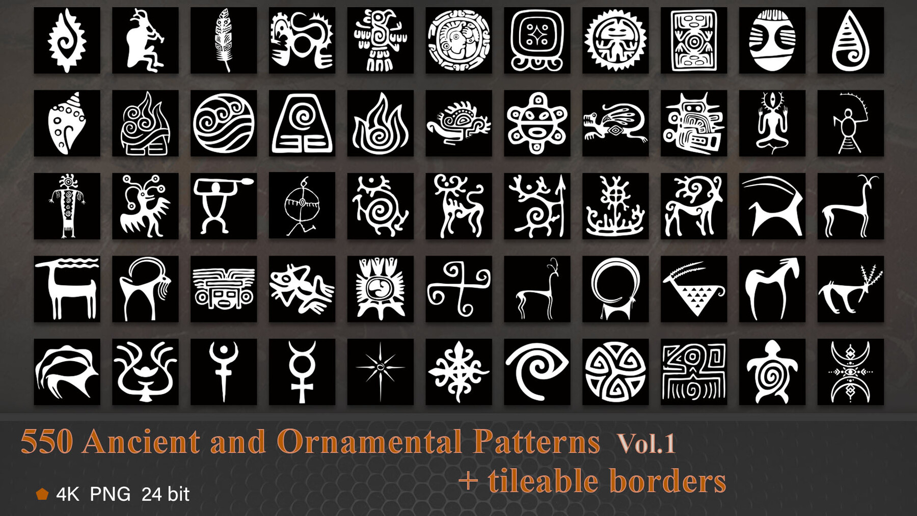 ArtStation 550 Ancient and ornamental Alpha patterns vol.1 50 free Brushes Very well made.