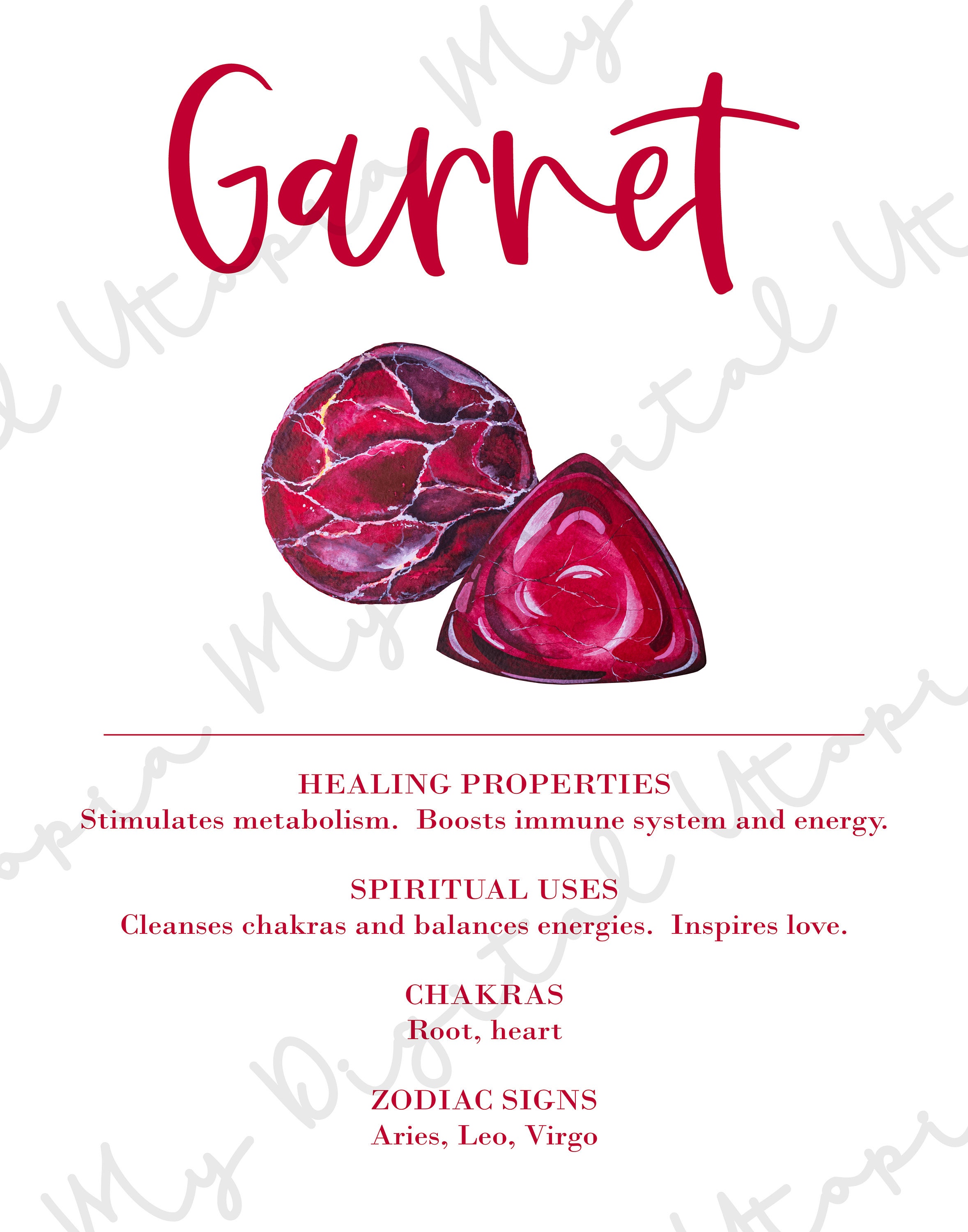 Garnet Crystal Print Printable Poster Lists Healing Properties Spiritual Uses Chakras and Zodiac Signs Associated With This Stone. Etsy Very well made.