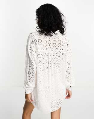 Camisa playera color marfil de manga larga con bordado ingl s de Very well made.