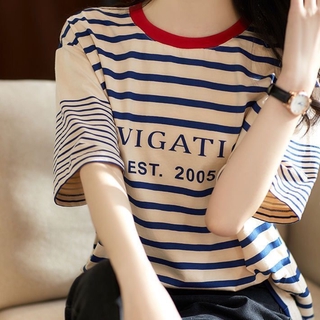 Camiseta a rayas de algod n para mujer camisetas informales Very well made.