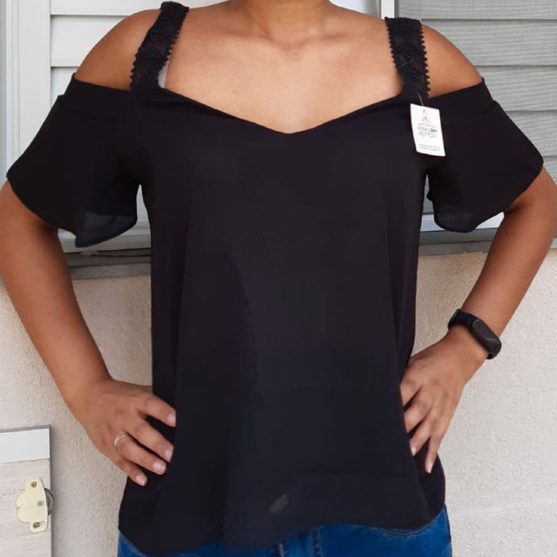 Blusa Preta com Manga Ca da No Ombro Blusa Feminina Nunca Usado Very well made.