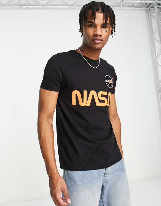 Camiseta negra con logo naranja reflectante de la NASA de Alpha Very well made.