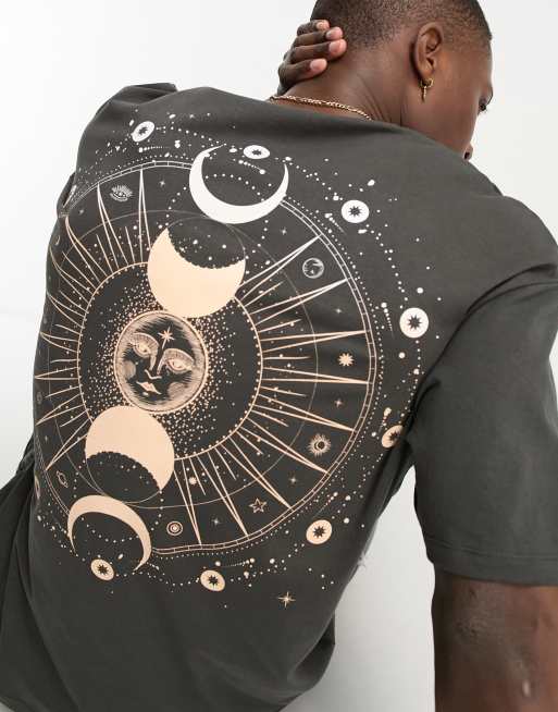 Camiseta gris oscuro extragrande con estampado de fases lunares en Very well made.