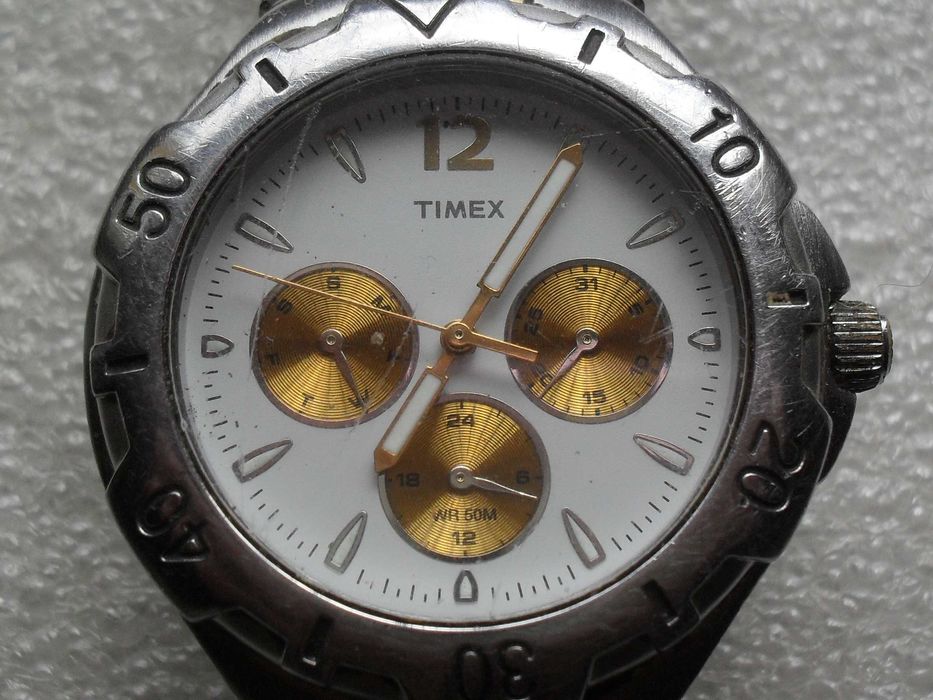 Timex Mens Stainless Steel Silver Tone Tan Chronograph Watch New Battery Etsy Canada Very well made.